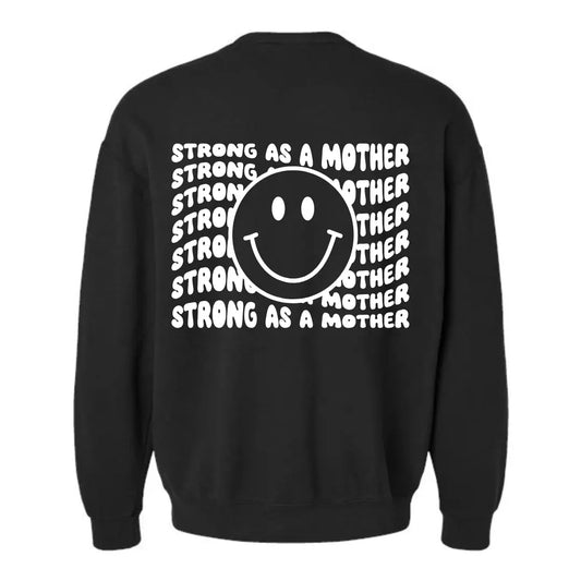 Strong As A Mother Crewneck Sweatshirt - SMILEY BLACK